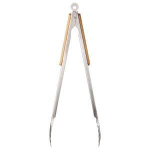 Artikel-Nr: RFS52487Diese Grillzange ist der unverzichtbare Helfer am Grill. Durch ihre Länge von 51 cm hat man als Grillmeister den idealen Abstand zum heißen Grill und kann Fleisch oder Gemüse sicher wenden und servieren. Die leicht gebogenen Enden der Zange sorgen dafür, dass das Grillgut sicher gegriffen werden kann. Die BBQ-Zange verfügt über eine praktische Arretierung und eine Öse zum Aufhängen. Der Griff aus schönem Bambusholz lässt sich durch eine Lasergravur besonders eindrucksvoll veredeln.