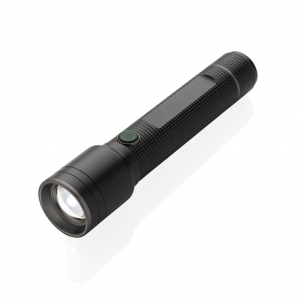 Artikel-Nr: XND513921Funktionalität, Leistung & Design vereinen sich in dieser wiederaufladbaren 10W-Taschenlampe aus RCS-zertifiziert recyceltem Aluminium. Gesamter recycelter Inhalt: 20%, bezogen auf das Gesamtgewicht des Artikels. Die RCS-Zertifizierung gewährleistet eine vollständig zertifizierte Lieferkette für die recycelten Materialien. Dank ihrer IP4-Zertifizierung ist sie wetterfest. Die Glühbirne erzeugt bis zu 800 Lumen und einen Lichtstrahl, der bis zu 500m weit reicht. Die Taschenlampe wird mit einer wiederaufladbaren A-Grade Batterie betrieben, so dass kein Batterie-Austausch nötig ist. Das Aufladen erfolgt einfach über eine USB-Buchse und das mitgelieferte RCS recycelte Type-C-Kabel. Die Lampe verfügt über 5 Modi inkl. SOS-Funktion. Der 2000mah-Akku ermöglicht eine Betriebsdauer von bis zu 8h mit einer einzigen Ladung. Aluminium verliert im Recyclingprozess nicht seine Eigenschaften und kann endlos recycelt werden. Artikel & Zubehör 100% PVC-frei. Verpackt in FSC-Mix-Verpackung.