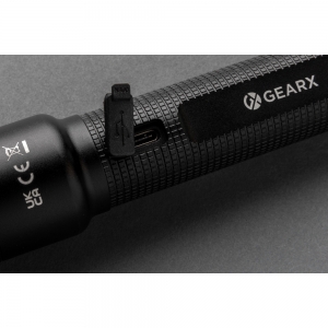 Große Gear X Taschenlampe aus RCS recycelt. Alu mit USB-Akku