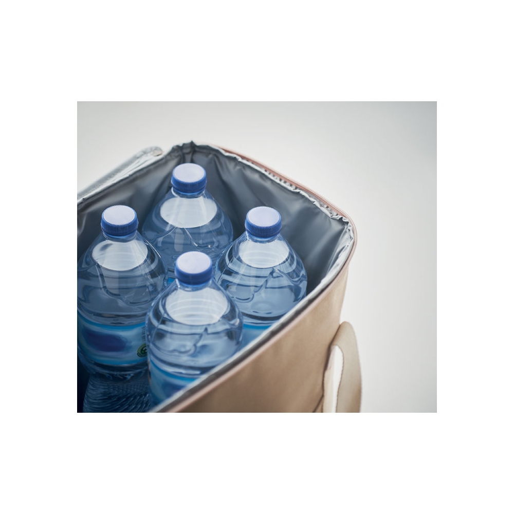 Artikel-Nr: OCBMO6869-13Große Kühltasche mit 2 Fächern aus gewaschenem Canvas mit Baumwoll-Gurt und Details aus PU. 450 g / m². Isolierung: 15C PEVA mit 6mm PE-Schaum.