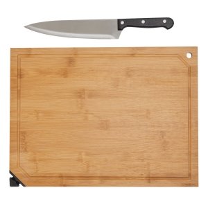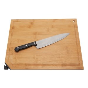 Artikel-Nr: INP58-8030479Großes Schneidebrett BAMBOO SHARP: aus Bambus, inkl. Messer aus Edelstahl mit Holzgriff, im Brett integrierter Messerschärfer aus Keramik, mit praktischer Ablaufrille am Rand und kleinem Loch zum Aufhängen, in Box