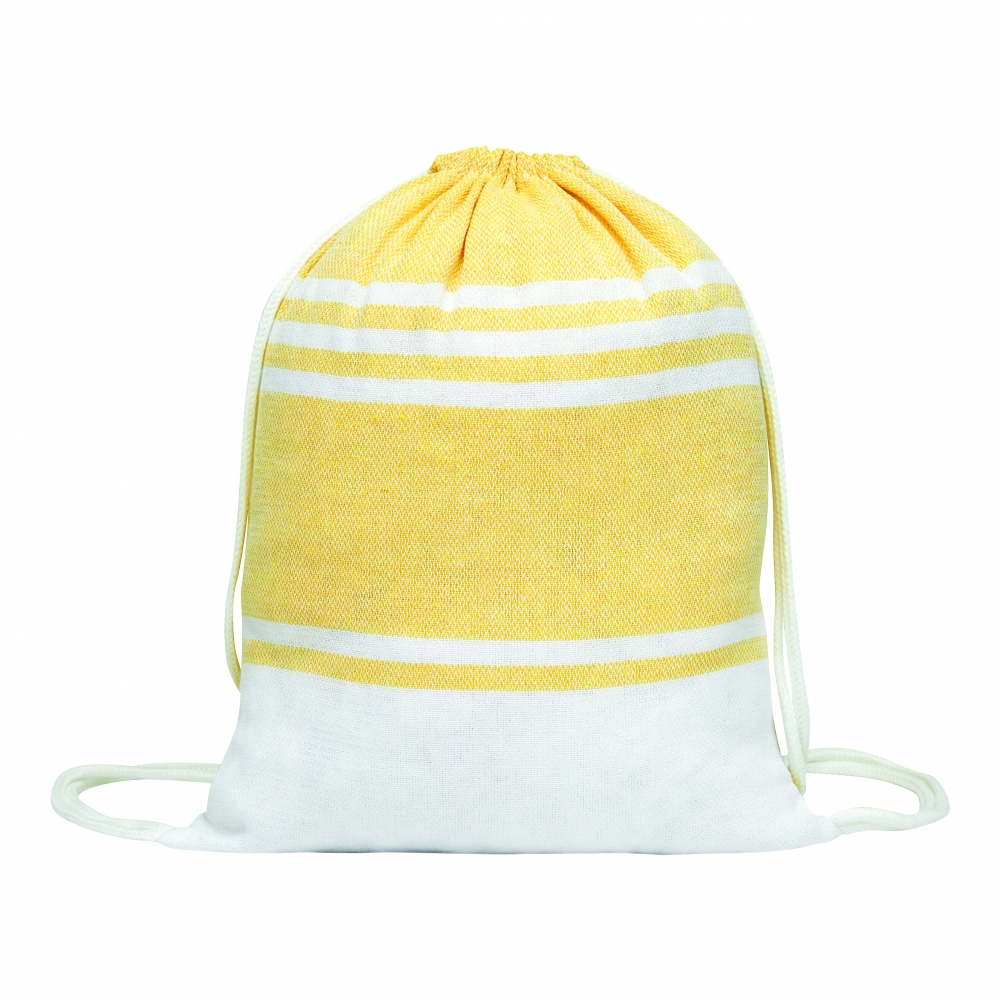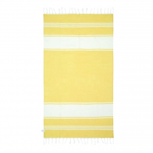 Artikel-Nr: INP56-1089104Großes Strandtuch / Saunatuch SUN & STEAM: mit weißen Streifen und Fransen, in farbig passender Tasche mit Kordelzug