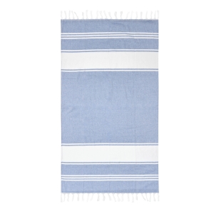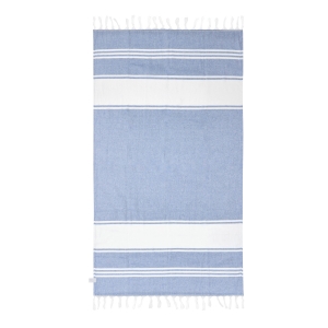 Artikel-Nr: INP56-1089101Großes Strandtuch / Saunatuch SUN & STEAM: mit weißen Streifen und Fransen, in farbig passender Tasche mit Kordelzug