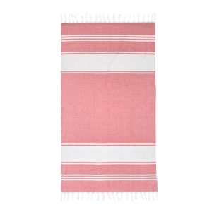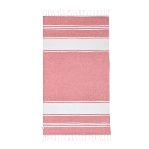Artikel-Nr: INP56-1089100Großes Strandtuch / Saunatuch SUN & STEAM: mit weißen Streifen und Fransen, in farbig passender Tasche mit Kordelzug