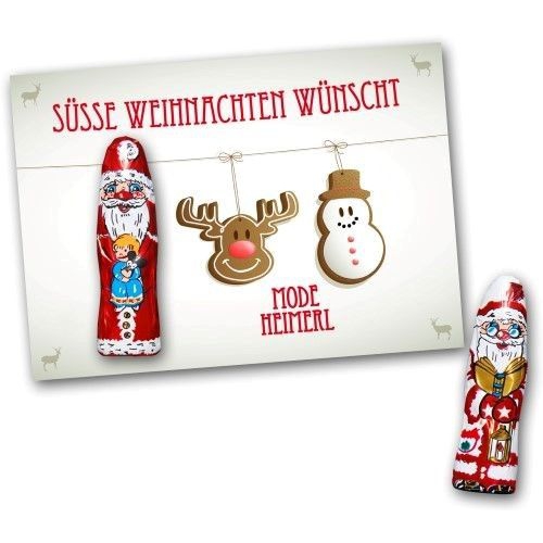 Verpackung: In Stanniol gewickelt und auf bedruckte Karte aufgeklebt.