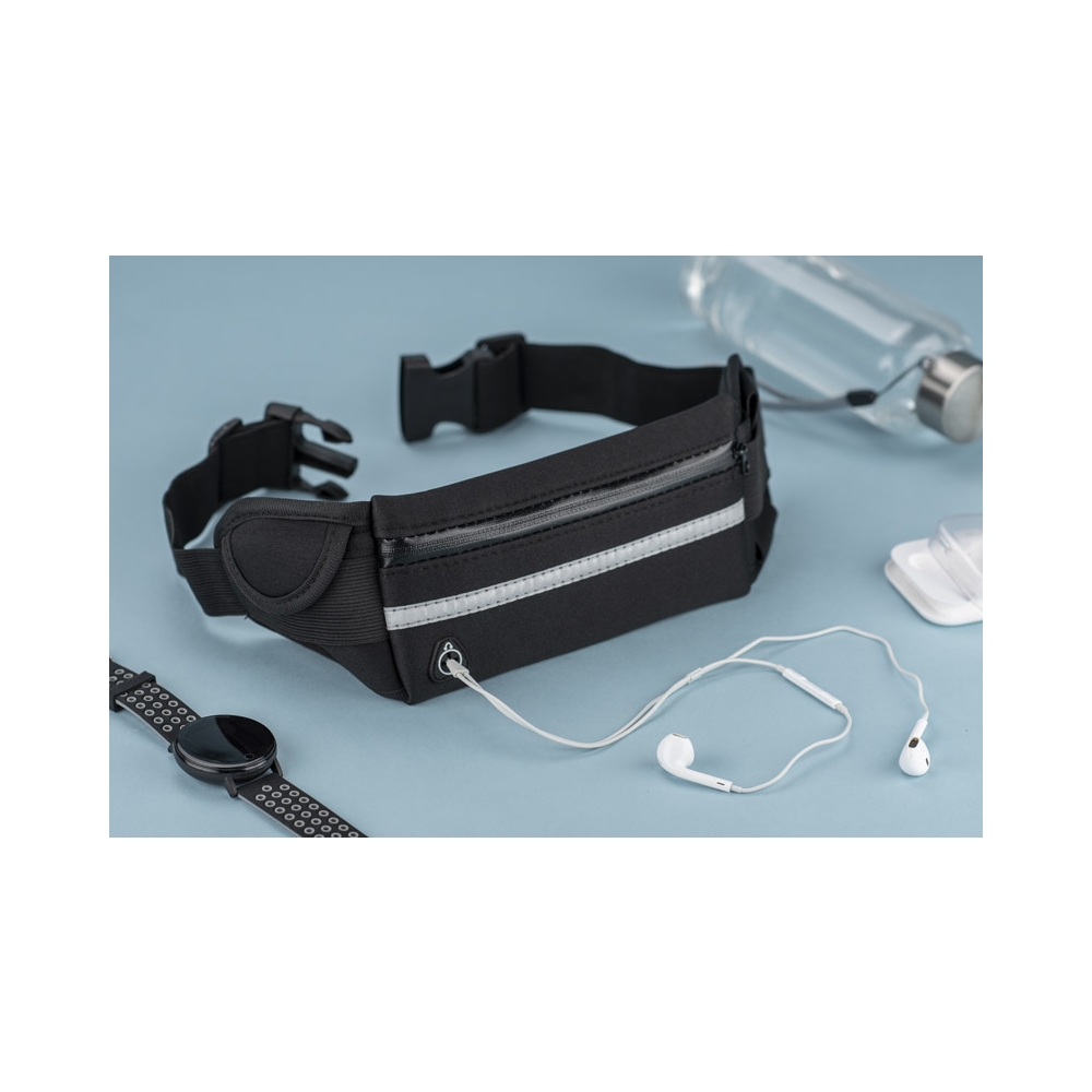 Artikel-Nr: ARD20505-02Die Hüfttasche ENDO ist das perfekte Gadget für alle Outdoor-Sportaktivitäten. Sie verfügt über einen verstellbaren Hüftgurt, eine wasserdichte Reißverschlusstasche, zwei kleinere Taschen und einen Kopfhörerausgang. Das reflektierende Band sorgt für Sichtbarkeit in der Dunkelheit.