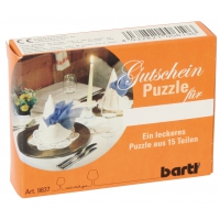 Artikel-Nr: 375109837Originelle Einladung zum Dinner for Two! Zuerst muss der / die Beschenkte das 15-teilige Puzzle lösen, dann darf er / sie die Überraschung genießen. Diese ist auf der Rückseite der Schachtel angekreuzt: Candle-Light-Dinner, Wochenend-Brunch, Private Cooking: Ich koche für dich ... Achtung! Nicht geeignet für Kinder unter 36 Monaten.