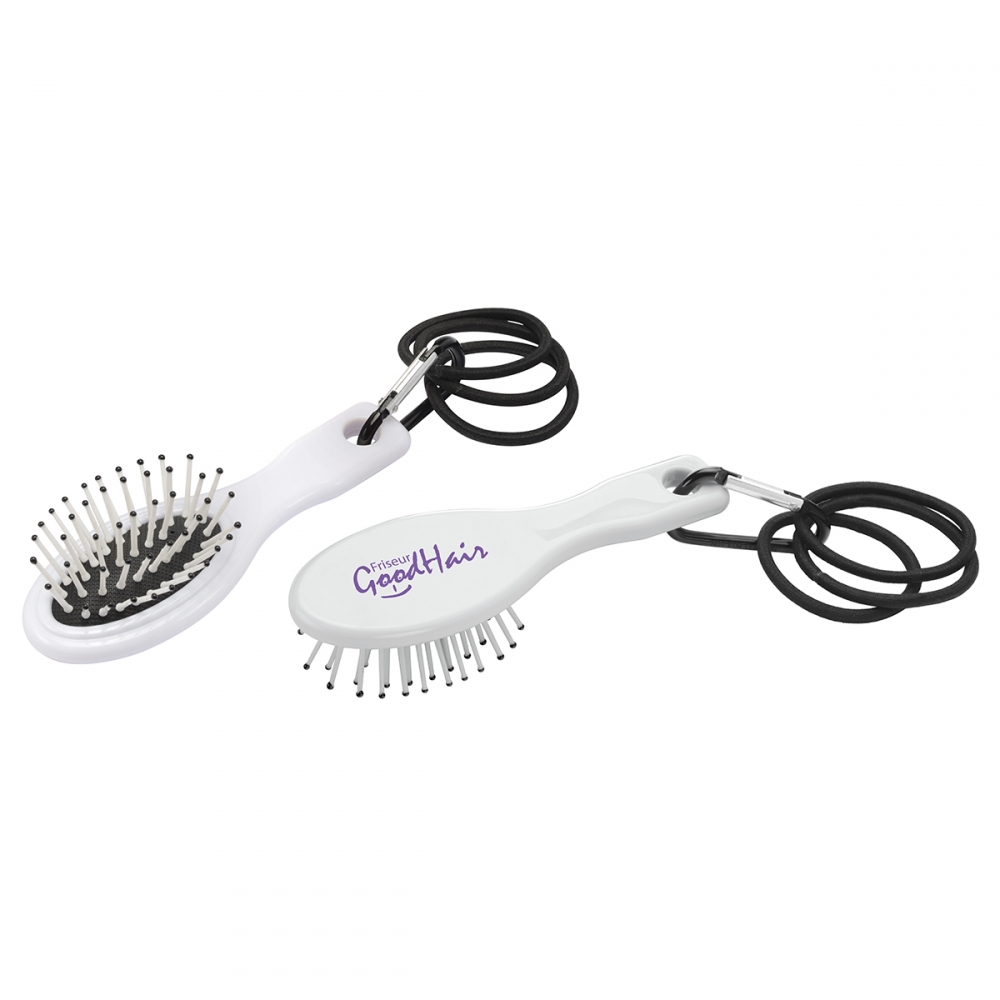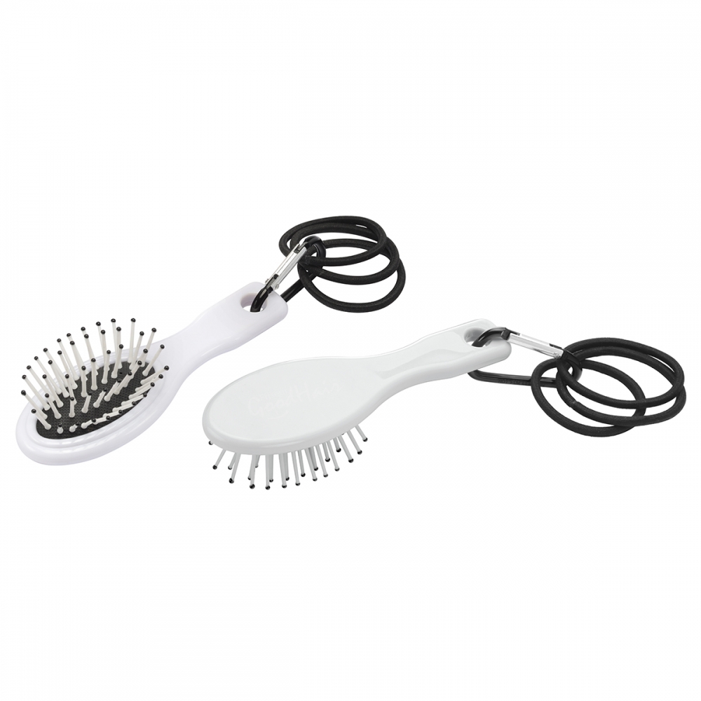 Artikel-Nr: HLA8408-0-6Haarbürste Reisegröße mit 3 Haargummis und Metall-Karabiner AUSLAUFARTIKEL