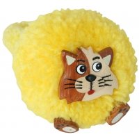 Der Körper des Plüschi ist ein weicher Woll-Bommel. Der Kopf und die Beinchen sind aus Holz. Viele Motive und Farben sortiert. Achtung! Kein Spielzeug!