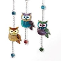 Artikel-Nr: 375110509Attraktiver Deko-Hänger aus buntem Acrylglas in dreiattraktiven Eulendesigns sortiert. Jede Eule ist mit silberfarbenem Draht verziert, durch Glaskugeln an der Kette wird das Ganze beschwert und aufgewertet.