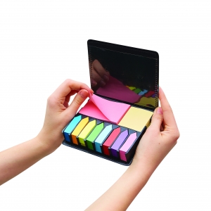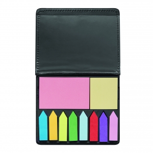 Artikel-Nr: INP56-1103021Memobox REMIND ME: bestehend aus Klebepfeilen in 8 Farben und 4 Haftnotizblöcken, transparentes Einsteckfach, im Kunstleder-Etui