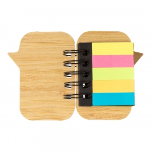 Artikel-Nr: AND734066Spiral-Notizblock mit Bambuscover, 100 großen Haftnotizen (in 4 Farben) und 125 Seitenmarkern (in 5 Farben).