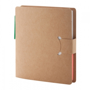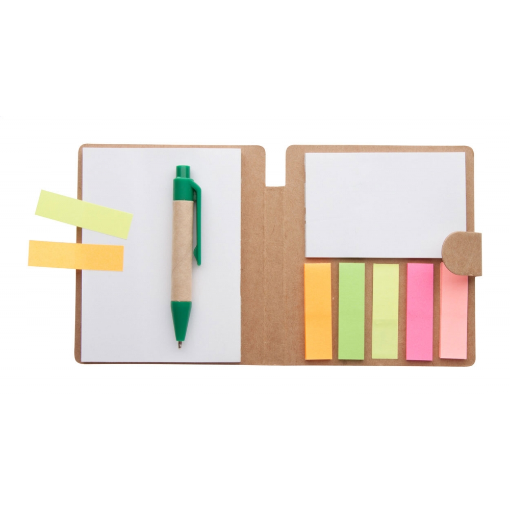 Artikel-Nr: AND731846Haftnotiz-Set mit Umschlag aus Recyclingpapier, verschiedenen Haftnotizgrößen und Kugelschreiber aus Recyclingpapier (blauschreibend).