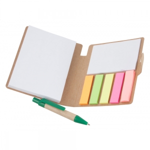 Artikel-Nr: AND731846Haftnotiz-Set mit Umschlag aus Recyclingpapier, verschiedenen Haftnotizgrößen und Kugelschreiber aus Recyclingpapier (blauschreibend).