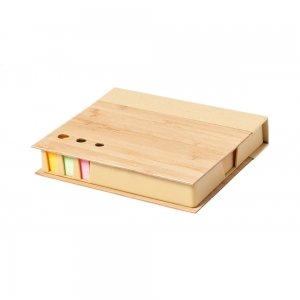 Artikel-Nr: AND722171Mit Bambus überzogener Haftnotizblock aus recyceltem Papier mit 115 großen, 115 mittleren und 420 Mini-Haftnotizen (in 3 verschiedenen Farben).