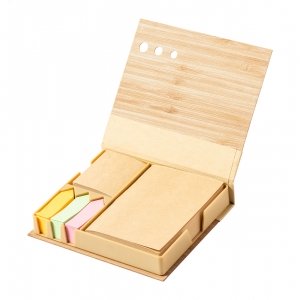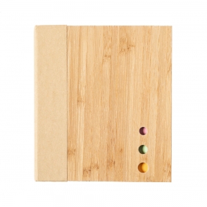 Artikel-Nr: AND722171Mit Bambus überzogener Haftnotizblock aus recyceltem Papier mit 115 großen, 115 mittleren und 420 Mini-Haftnotizen (in 3 verschiedenen Farben).