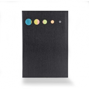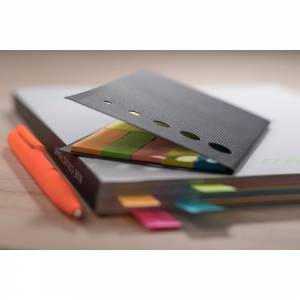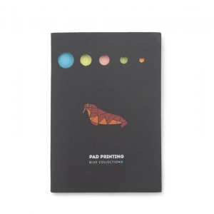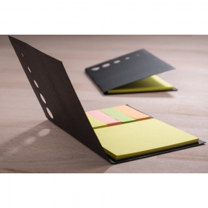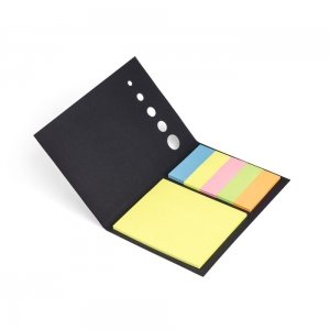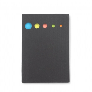 Artikel-Nr: ARD17129Haftnotizen in 5 Farben und Taschennotizbuch mit schwarzem Umschlag. Das Logo wird mit der Tampondruck-Metode aufgetragen.