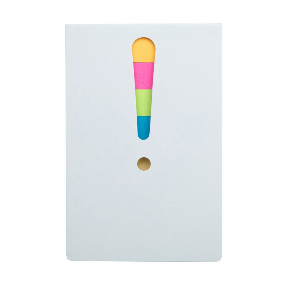 Artikel-Nr: AND800424-01Haftnotizblock mit 25 großen, 100 kleinen Haftnotizblättern (in 4 Farben) und einem ausgestanzten Ausrufezeichen auf dem Cover.