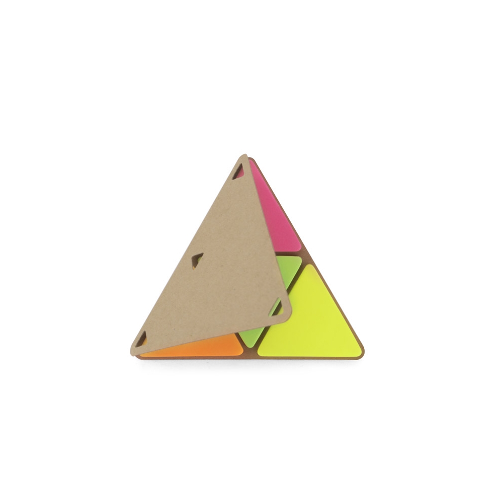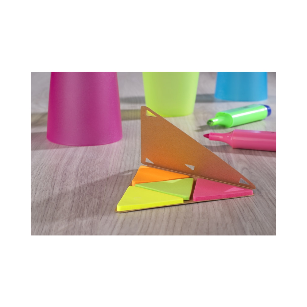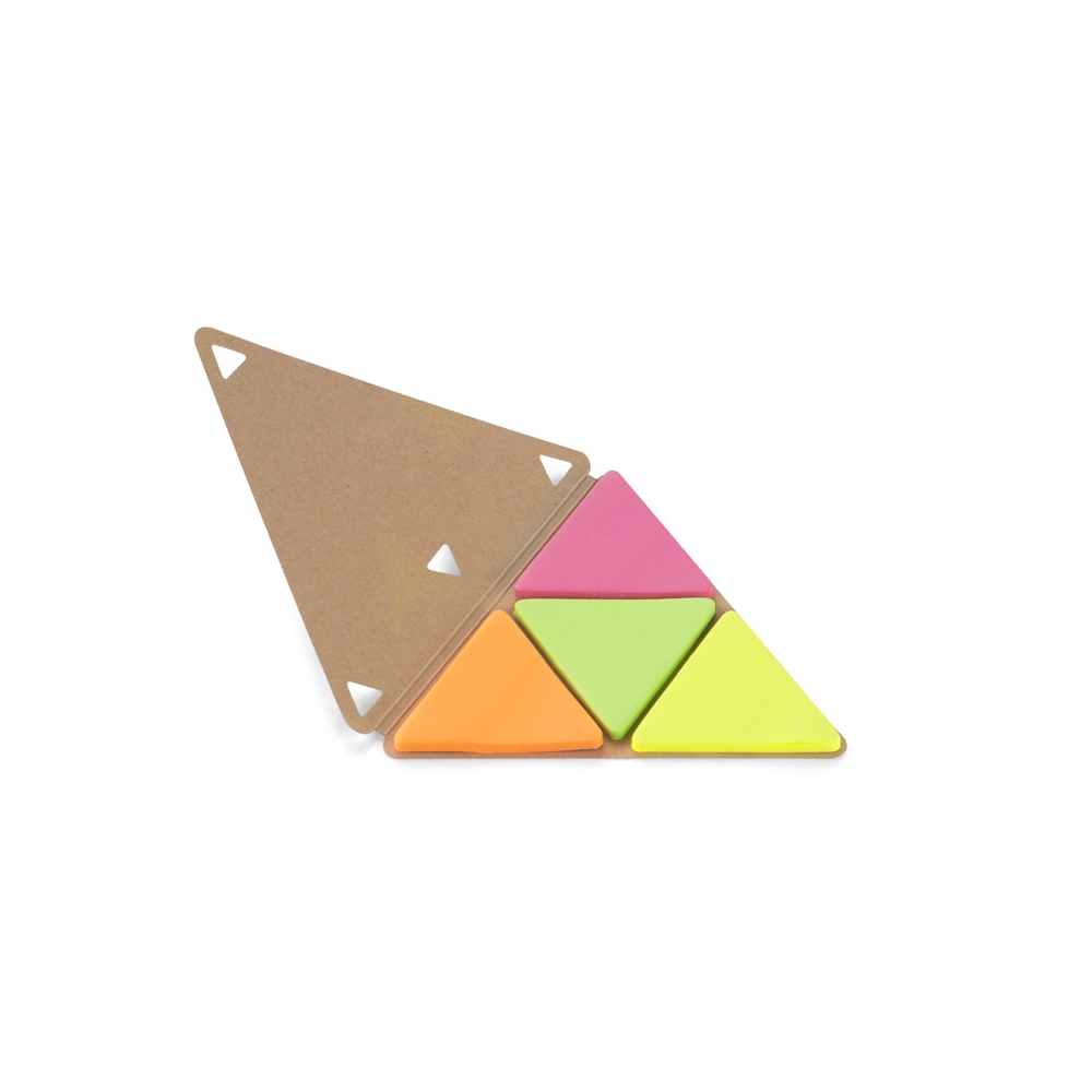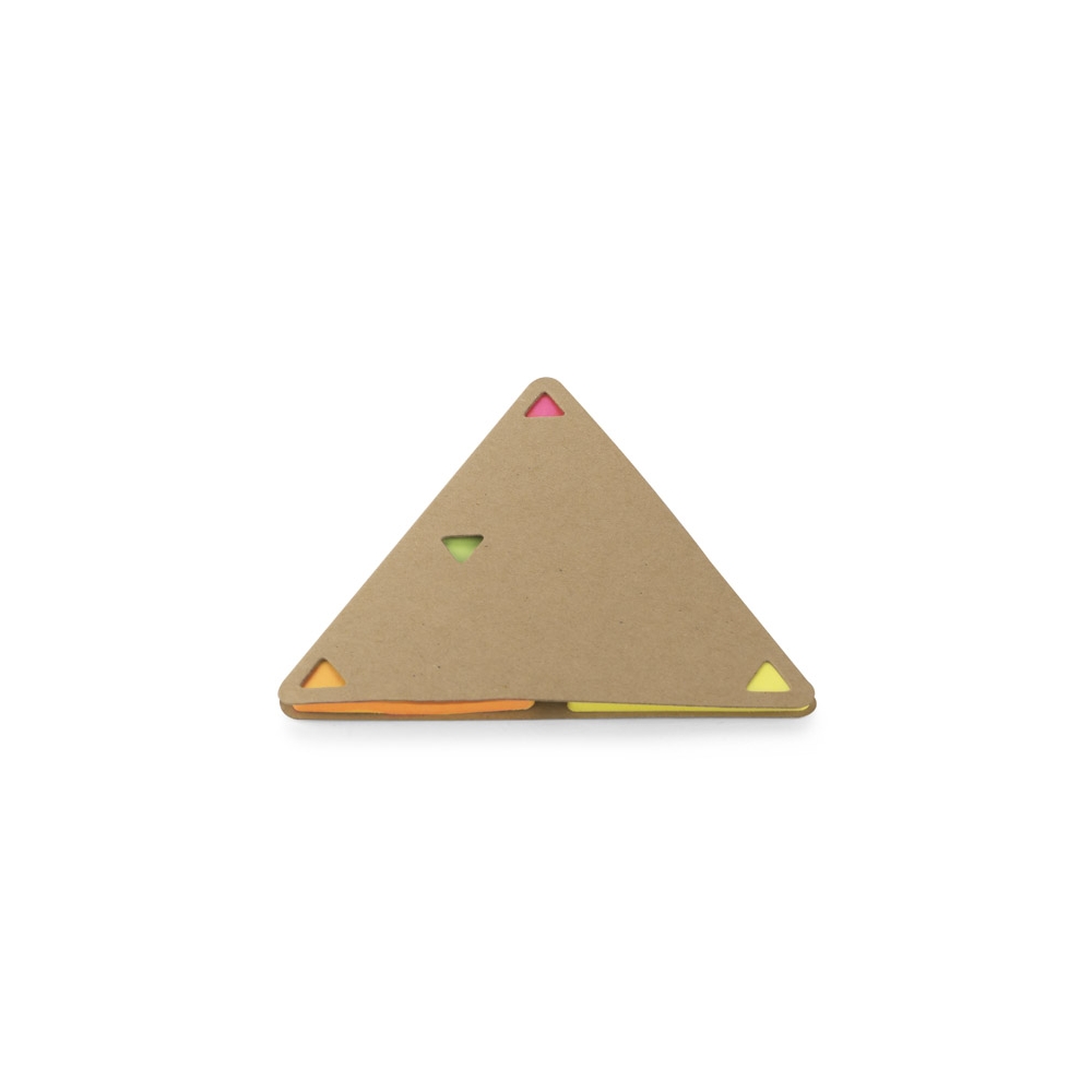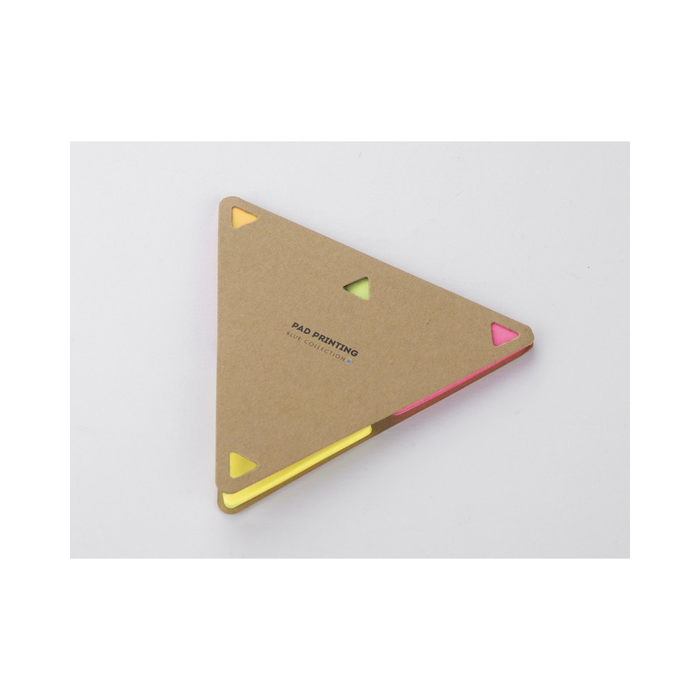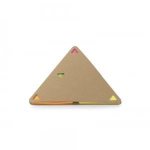 Artikel-Nr: ARD17858Haftnotizen PEL in Form eines Dreiecks mit umweltfreundlichem Papierumschlag. Im Inneren befinden sich 25 Blätter in 4 Farben: Orange, Pink, Grün, Gelb.