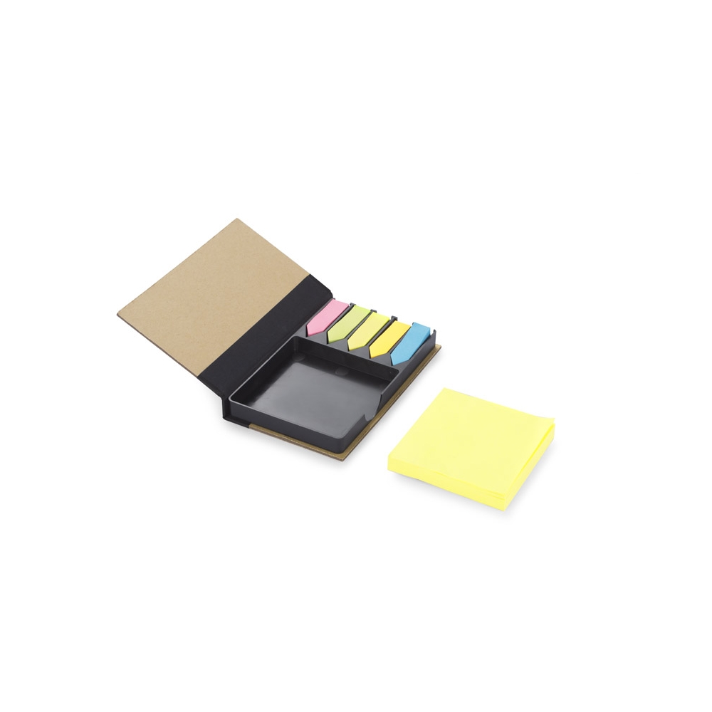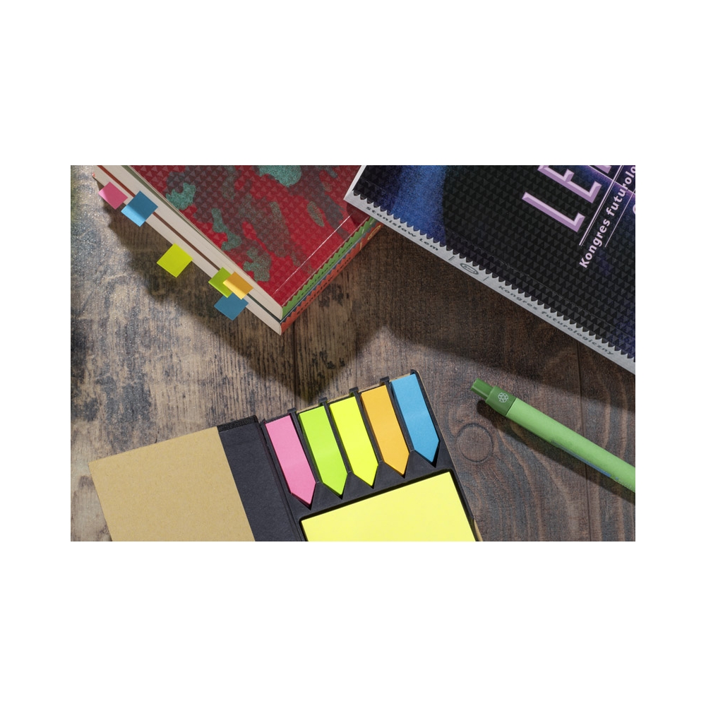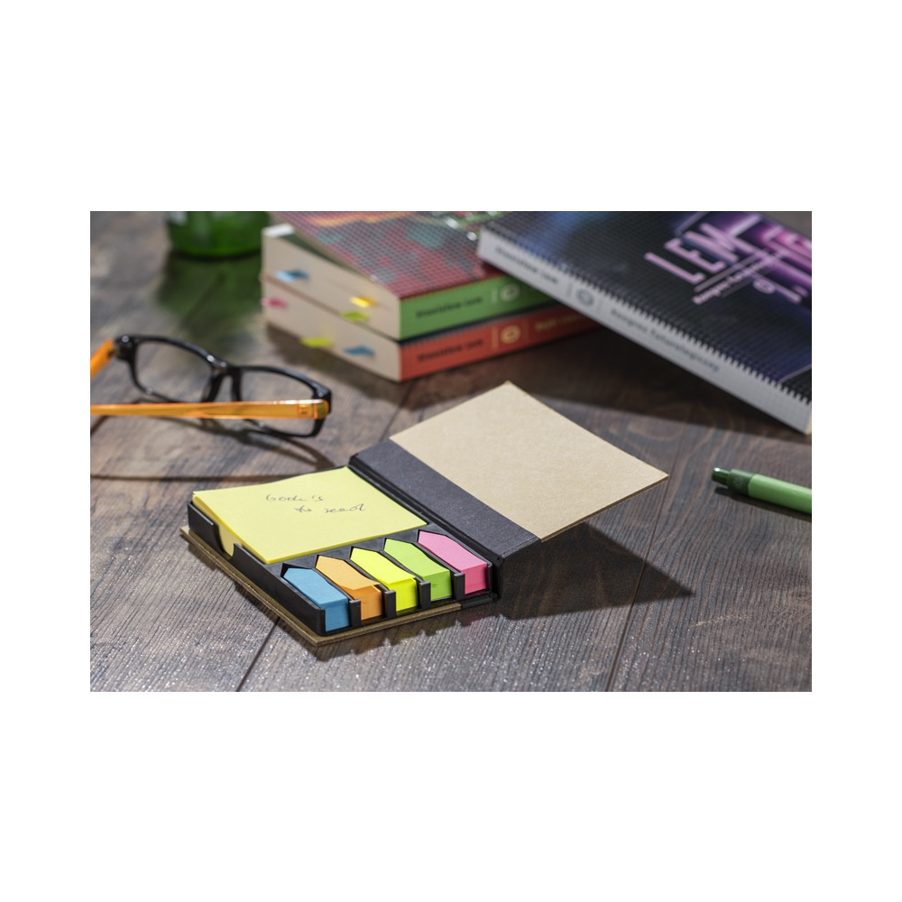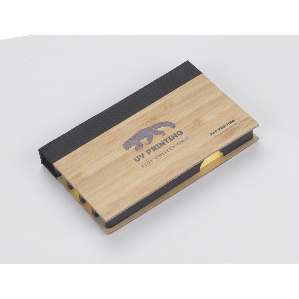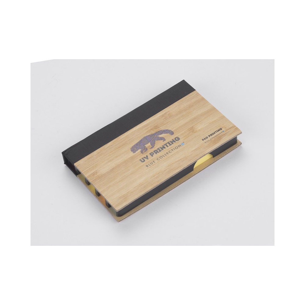 Artikel-Nr: ARD17878Ein praktisches Set von Haftnotizen fürden Schreibtisch. Das Set enthält gelbe Haftnotizen und 5 farbige Haftmarker. Ein Etui aus Bambus.