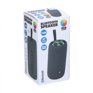 Artikel-Nr: CLP263071-001Tragbarer, kabelloser 16-W-Bluetooth-Lautsprecher (5.4) mit RGB-6-LED-Beleuchtung. Dieser kompakte, aber leistungsstarke Lautsprecher verfügt über zwei 8-W-Lautsprecher, einen beeindruckenden Klang mit satten Bässen und eine stimmungsvolle RGB-Lichtshow. Ideal für zu Hause, eine Party im Freien oder für unterwegs. Der Lautsprecher ist mit 6 LED-Lichtern in 4 verschiedenen Farben ausgestattet, die für eine dynamische RGB-Lichtshow und eine festliche Atmosphäre sorgen. Spielen Sie Musik über Bluetooth, USB, TF-Karte ab oder genießen Sie FM-Radio, damit Sie immer Zugriff auf Ihre Lieblingssongs haben. Ladezeit 5 Stunden. Bei einer Lautstärke von 70% und ohne Verwendung des RGB-Lichts hat die Partybox eine Akkulaufzeit von 2,5 Stunden. Mit Licht hält der Lautsprecher 2 Stunden. TWS-Funktionalität zum kabellosen Verbinden von zwei Lautsprechern. Drahtlose Reichweite bis zu 10 Metern. Eingang: 5 V/1 A. Ladeanschluss: USB-C und USB-A. Inklusive Trageschlaufe, integriertem 1200-mAh-Li-Ionen-Akku, USB/USB-C-Ladekabel und Gebrauchsanweisung.