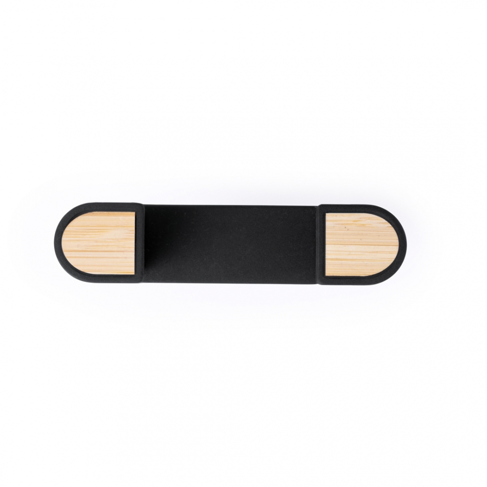 Artikel-Nr: KTO20424002000Verstellbare Smartphone-Halterung mit minimalistischem Design, 360° drehbarem Sockel und elegantem schwarzen Finish mit Bambus-Details. Mit Befestigungssystem im Lüftungsgitter des Autos und großer Beschriftungsfläche, die speziell für den Tampondruck entwickelt wurde. Präsentiert in einer Design-Kraftstoffbox. Materialien wie Bambus fördern die Verwendung von natürlichen Rohstoffen und reduzieren die Schadstoffemissionen. Es handelt sich um eine sehr widerstandsfähige und vielseitige Pflanze, die schnell wächst und sich regeneriert, was sie zu einer hervorragenden Alternative zu herkömmlichem Holz macht.