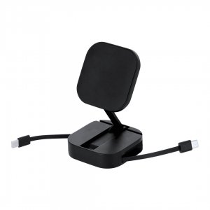 Artikel-Nr: KTO221900020002-Zoll-1 60W Magnetladekabelstütze, gefertigt aus recyceltem ABS (RABS). Konzipiert für gleichzeitiges Smartphone-Laden über einen magnetischen Halter und per Kabel. Er verfügt über einen Klappständer mit Positionsverstellung. 80 cm einziehbares Kabel mit Lade- und Datenübertragungsfunktion, kompatibel mit Geräten mit USB-C-Eingang.