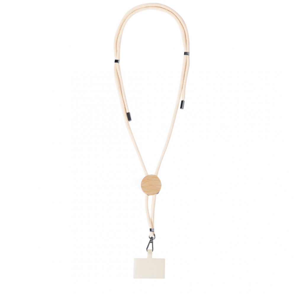 Artikel-Nr: KTO20746373000Originelles Schlüsselband mit Smarphone-Halterung. Aus strapazierfähiger Baumwolle, mit Bambuseinsatz für das Branding. Halterungskarte zur Befestigung zwischen Smartphone und Hülle und drehbarem Karabinerhaken aus Metall. Verstellbares Band mit verchromten Beschlägen an den Enden der Kordeln. Materialien wie Bambus fördern die Verwendung von natürlichen Rohstoffen und reduzieren die Schadstoffemissionen. Es handelt sich um eine sehr widerstandsfähige und vielseitige Pflanze, die schnell wächst und sich regeneriert, was sie zu einer ausgezeichneten Alternative zur Verwendung von traditionellem Holz macht.