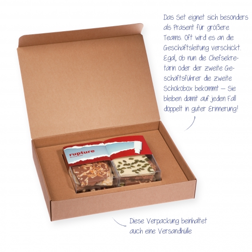 Handgeschöpfte Schokolade-Präsentbox im Zweier-Set