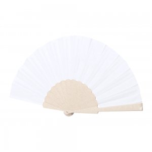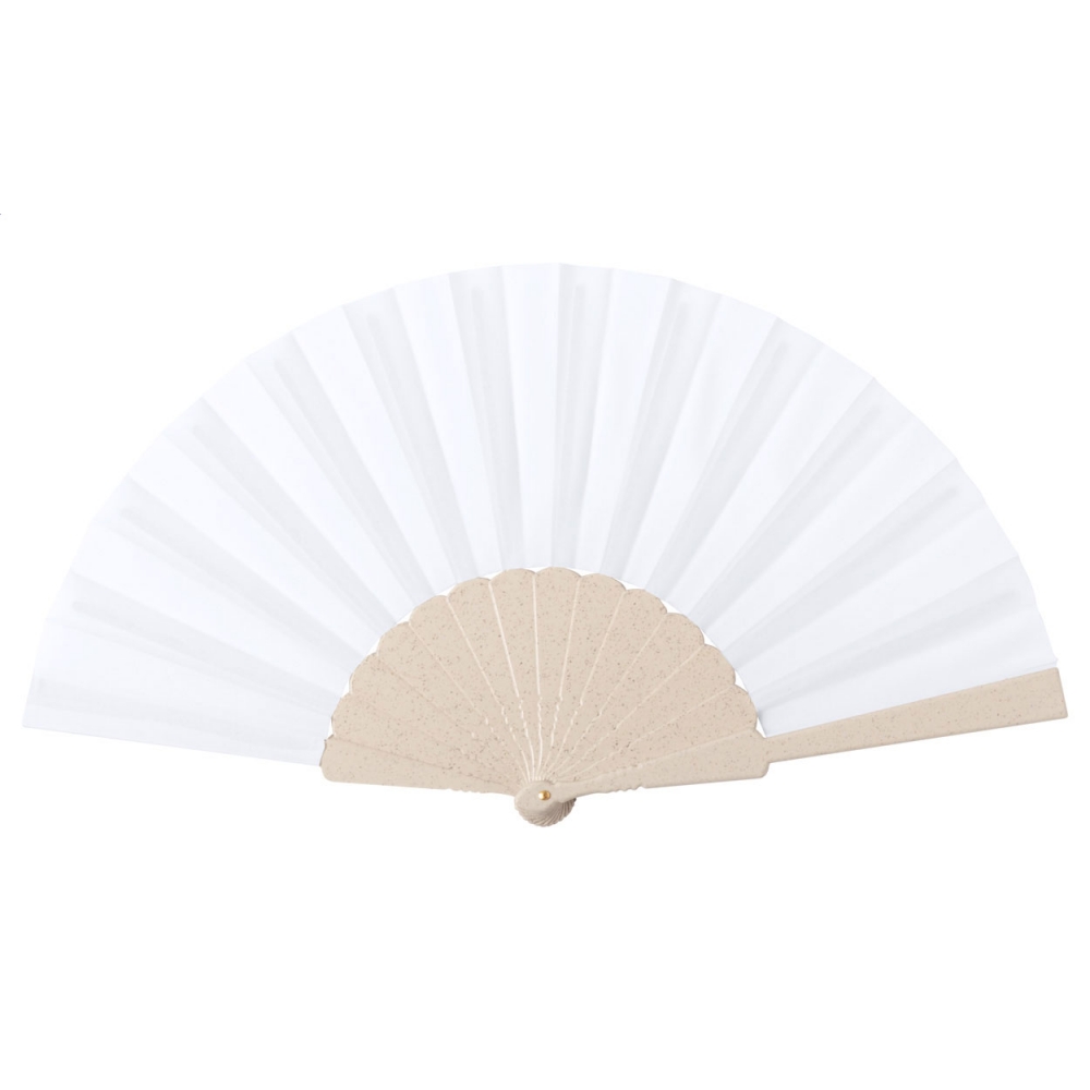 Artikel-Nr: AND721645-00Handventilator aus recyceltem PET-Polyester mit Speichen aus Bambusfaser-Kunststoff. In Kraftpapierbox.