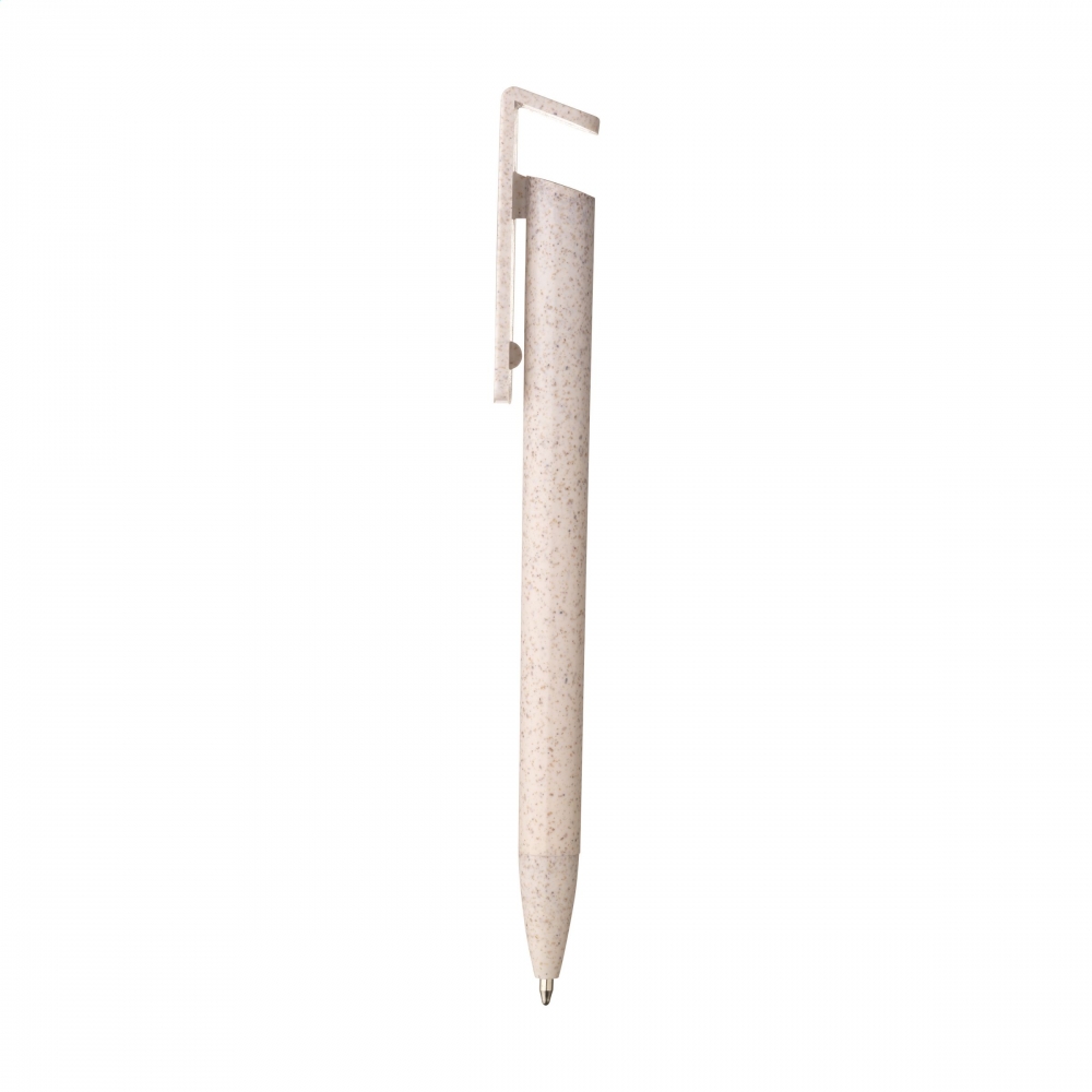 Artikel-Nr: CLPW1014220WoW! Blauschreibender Kugelschreiber aus 80% Weizenabfällen und 20% Kunststoff. Weizen wird auf der ganzen Welt angebaut. Dies bedeutet, dass auch eine große Menge Weizenabfälle in Form von Blättern, Stroh und mehr anfallen. Aus diesem Abfall wird dieser Stift hergestellt. Dieser Stift hat ein nettes Extra: Er ist auch ein Telefonhalter.