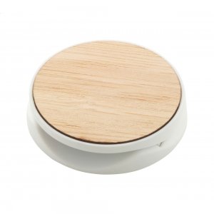 Artikel-Nr: AND800448-01Runder mit Bambus beschichteter Handyhalter aus Kunststoff, mit selbstklebendem Sockel.