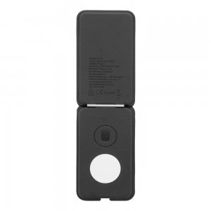 Artikel-Nr: AND864120-10Hochwertige, faltbare Handyhalterung und kabelloses Ladegerät aus recyceltem PU-Leder. Mit magnetischem kabellosem Schnellladegerät (15 W), kabellosem Ladegerät (5 W) für Kopfhörer (nur Apple®) und kabellosem Ladegerät (2,5 W) für Smartwatches (Apple® und Samsung®). Inklusive selbstklebendem Metallring, um die Magnetfunktion auf jedem kabellos ladbaren Gerät zu nutzen. Kompatibel mit iPhone® 12 oder neuer. Inklusive USB-Ladekabel.