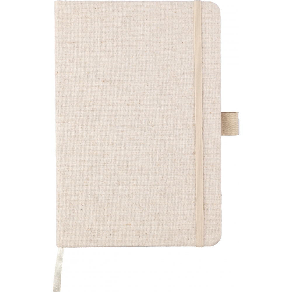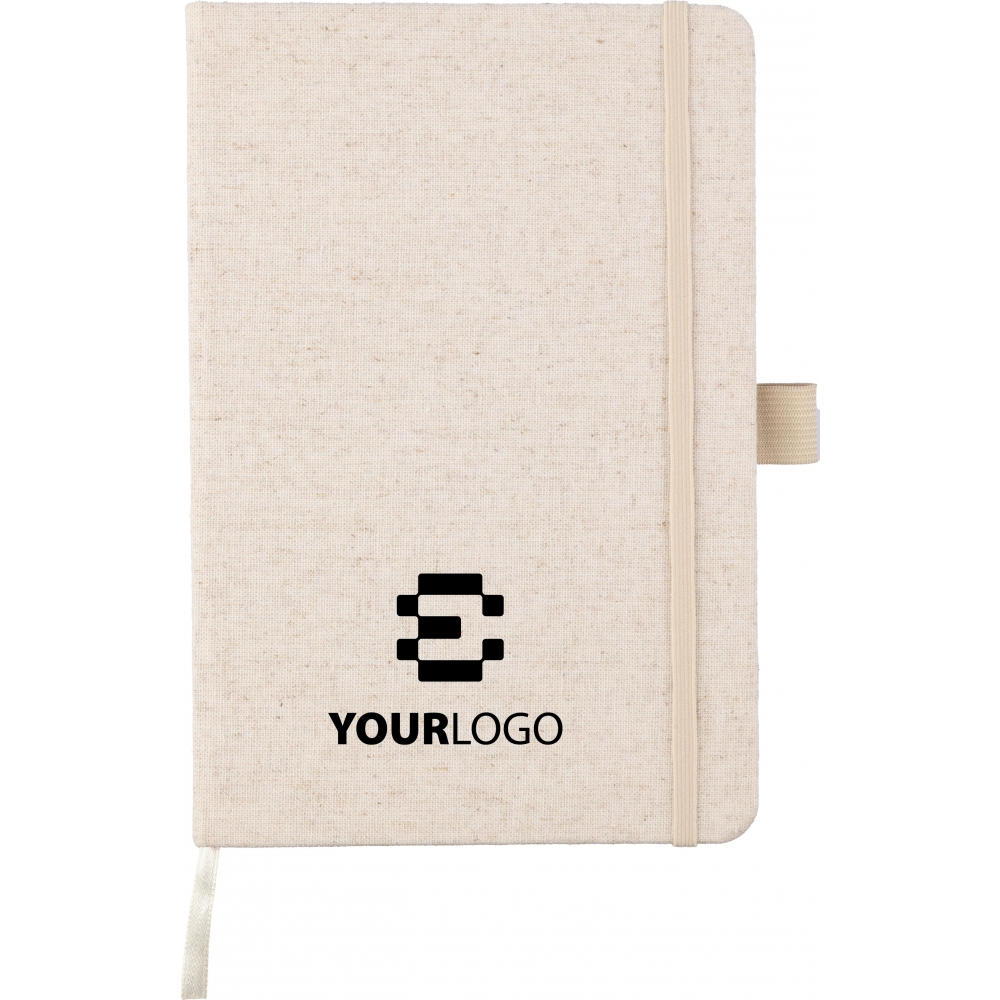 Artikel-Nr: GIV1103680013Hanf-Notizbuch (ca. A5) mit 80 Seiten, mit einer Stiftschlaufe, einem Gummiband und einem Band in einer passenden natürlichen Farbe. Enthält ein Hanf-Logo auf der Rückseite des Covers.