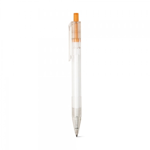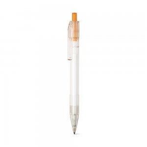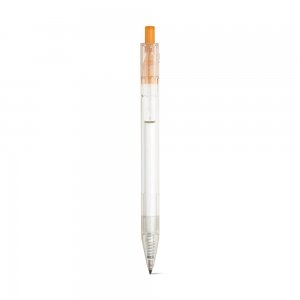 Kugelschreiber aus transparentem 100% rPET mit farbigem Druckknopf und schwarzschreibender Mine. ø11 x 142 mm