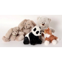 Hochwertige Plüschfigur aus kuschelweichem Softplüsch mit gemustertem Halstuch. 100 % Polyester. Waschbar. Reine Handarbeit.
