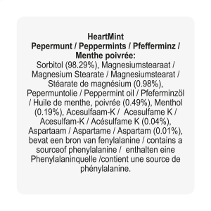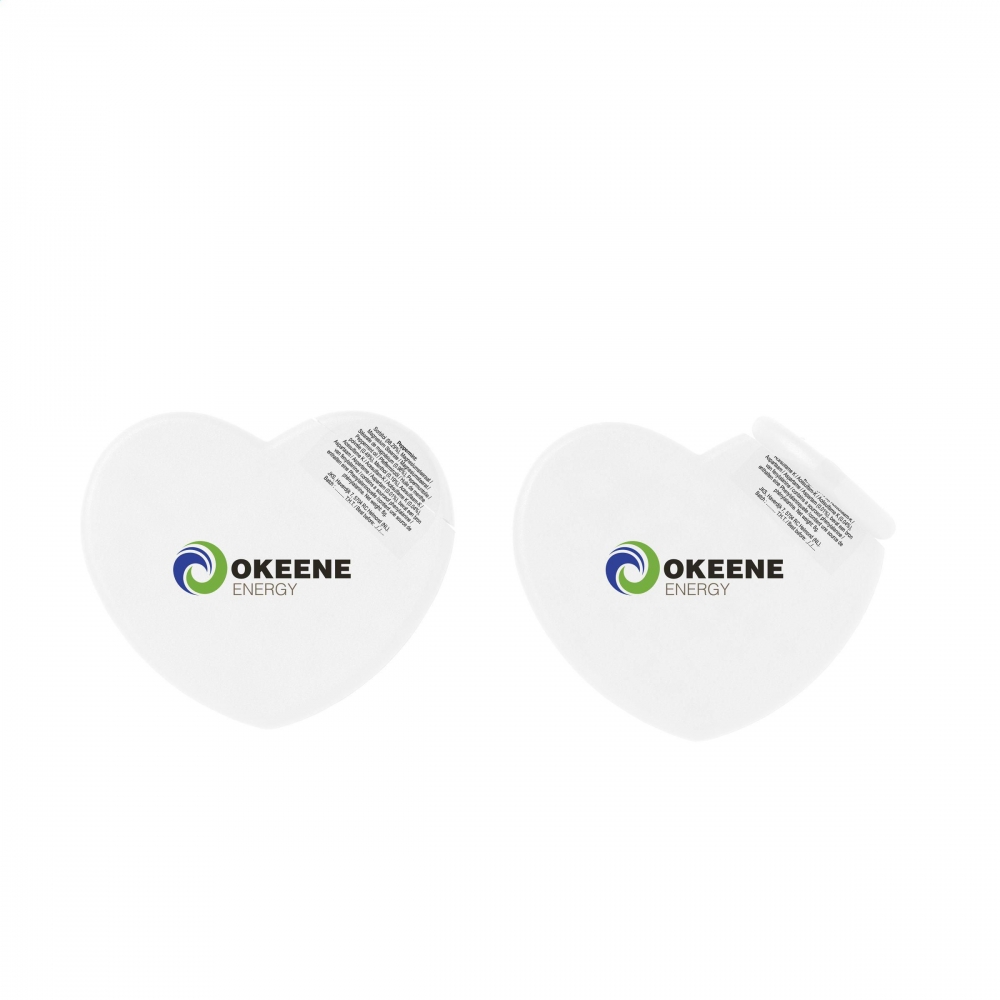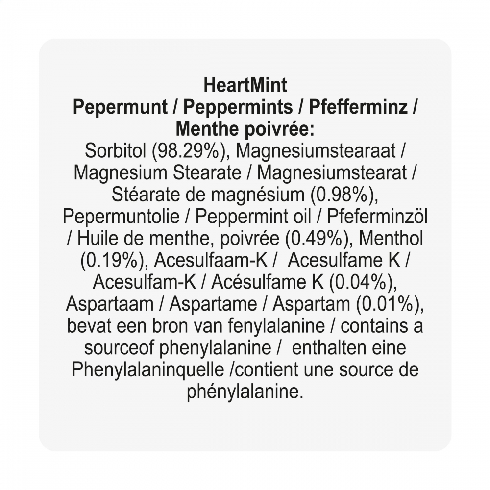 Artikel-Nr: CLP263013-002214Ein kompakter und flacher herzförmiger Spender aus Kunststoff, gefüllt mit ca. 8 Gramm (50 Stück) zuckerfreien Pfefferminzdrops.