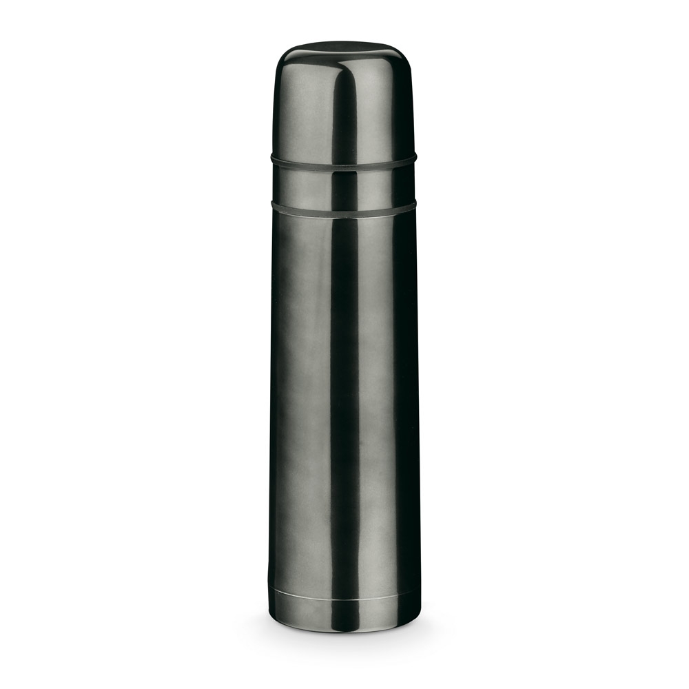 Artikel-Nr: PST94667-147Isolierkanne aus Edelstahl (750 mL) mit 2 im Deckel integrierten Bechern. Geliefert in einer Schachtel. ø86 x 310 mm