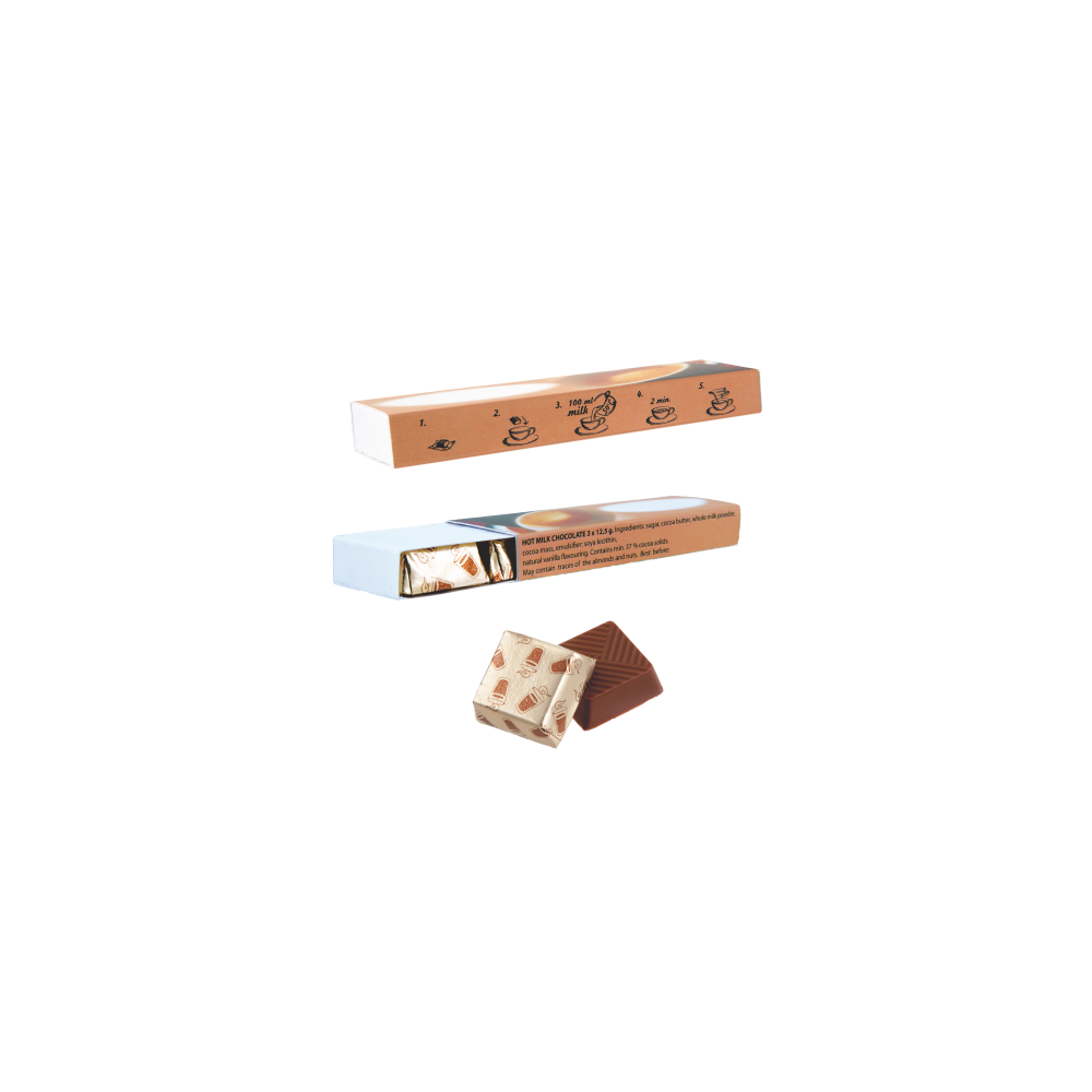 Artikel-Nr: PRM505107_00Heiße Schokolade 3 Stück in bedruckter Schachtel aus Karton. Sie brauchen nur etwas heiße Milch zuzufügen und schon erhalten Sie eine unwiderstehliche heiße Trinkschokolade !