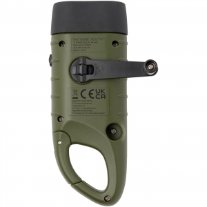 Helios Solar-Dynamo-Taschenlampe aus recyceltem Kunststoff mit Karabinerhaken