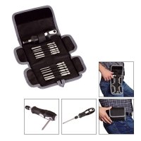 Artikel-Nr: 57381110SW-GR13-teiliges Hightech Bit-Set. Hochwertiges und praktisches Set für Hand- und Heimwerker, da Schraubendreher und Bits immer gleich zur Hand sind. Übersichtlich angeordnet befinden sich im Set 12 sandgestrahlte Bits in 9 cm Länge aus CRV-Stahl S2 Rockwell 58~61°: 4x Torx (T10 / T15 / T20 / T25), 3x Phillips (PH0,PH1,PH2), 2x Schlitz (5,5, 6,5 mm), 3x Pozidriv (PZ1 / PZ2 / PZ3). Der Schraubendreher mit Schnellwechsel-Bithalter garantiert mit seiner Anstoßsicherung ein sicheres Arbeiten. Die magnetische Bitaufnahme fixiert komfortabel das Bit. Alle Bits können auch am Griffkopf eingesteckt werden, um das Drehmoment zu erhöhen. Alle Teile sind in einer praktischen Nylontasche untergebracht, die komfortabel am Gürtel befestigt werden kann, um Ihnen die Hände für die Arbeit freizuhalten. Zusätzlich befindet sich an der Nylontasche noch eine Schlaufe zum Aufhängen.
