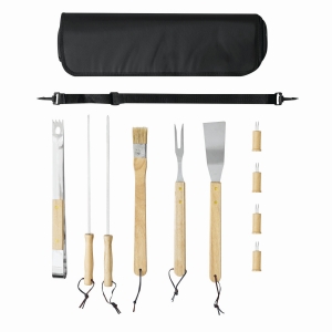 Artikel-Nr: INP56-0604015Hochwertiges Grillbesteck FRIED: aus Edelstahl mit Holzgriffen, im Reißverschlussetui