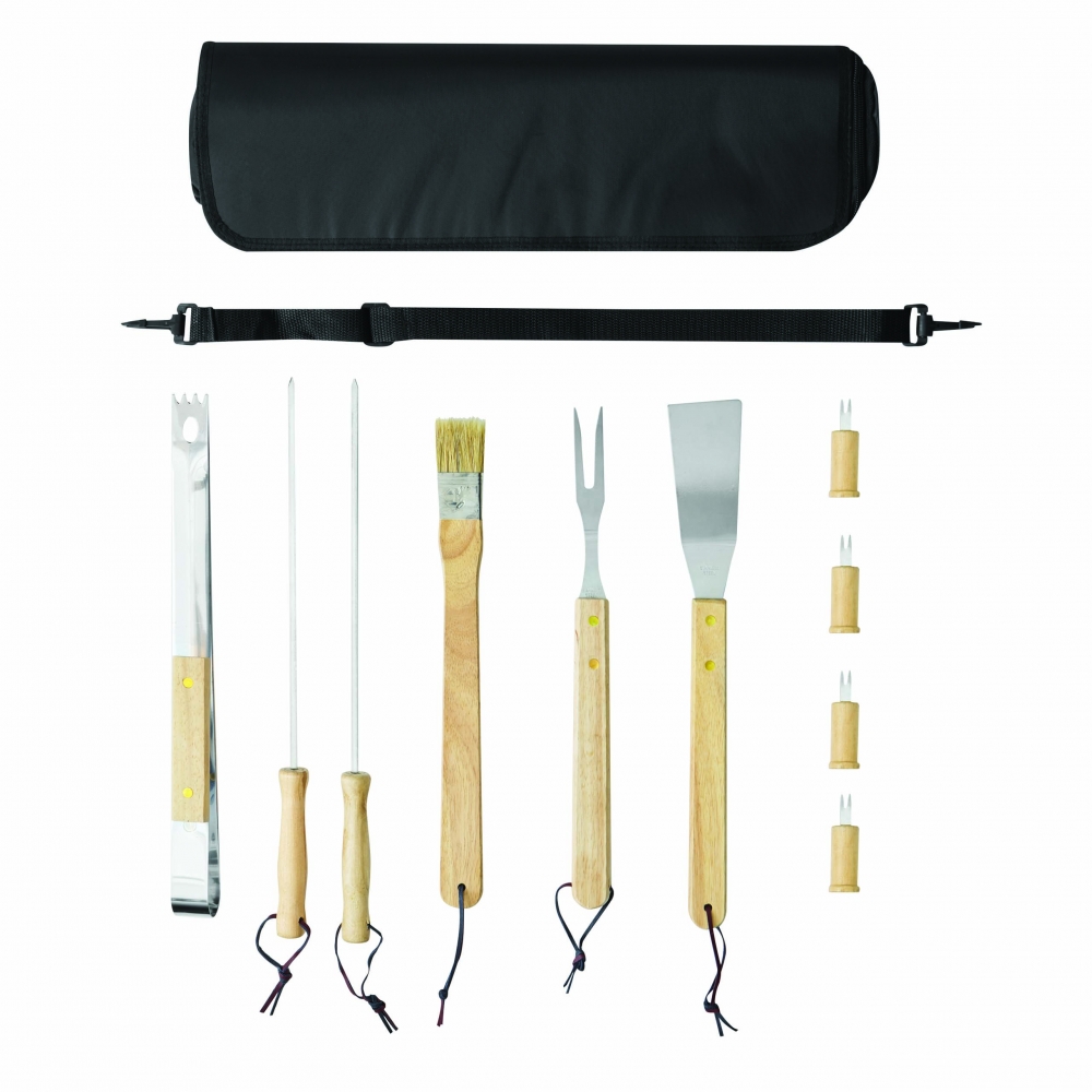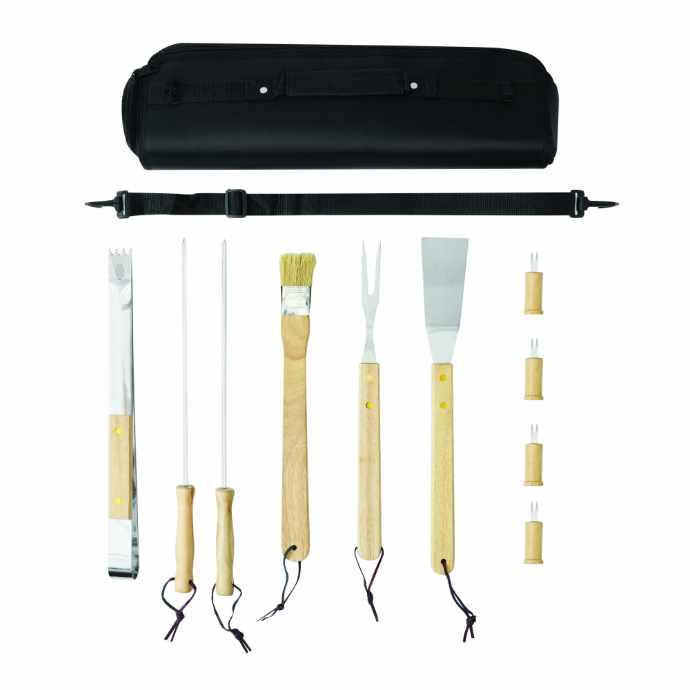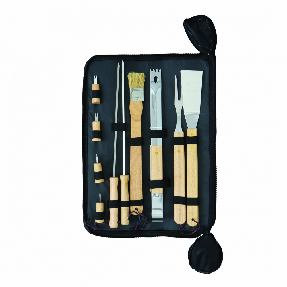 Artikel-Nr: INP56-0604015Hochwertiges Grillbesteck FRIED: aus Edelstahl mit Holzgriffen, im Reißverschlussetui