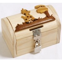 Hochwertige Holzsparkasse mit Schloss. Sechs Motive sortiert. Achtung! Kein Spielzeug!