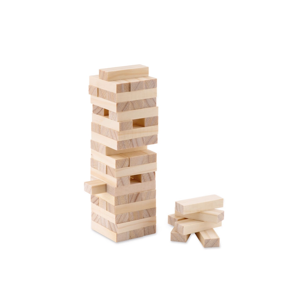 Artikel-Nr: OCBMO9574-40Geschicklichkeitsspiel ''Holzturm''. 54 Blöcke aus Holz im Beutel aus Baumwolle.