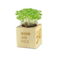 Mit Sonnenblumensamen und Torftablette, inklusive 1- bis 4-farbigem Druck auf der Banderole, auch mit Fichtensamen erhältlich, Mehrpreis € 0, 07 per Stück