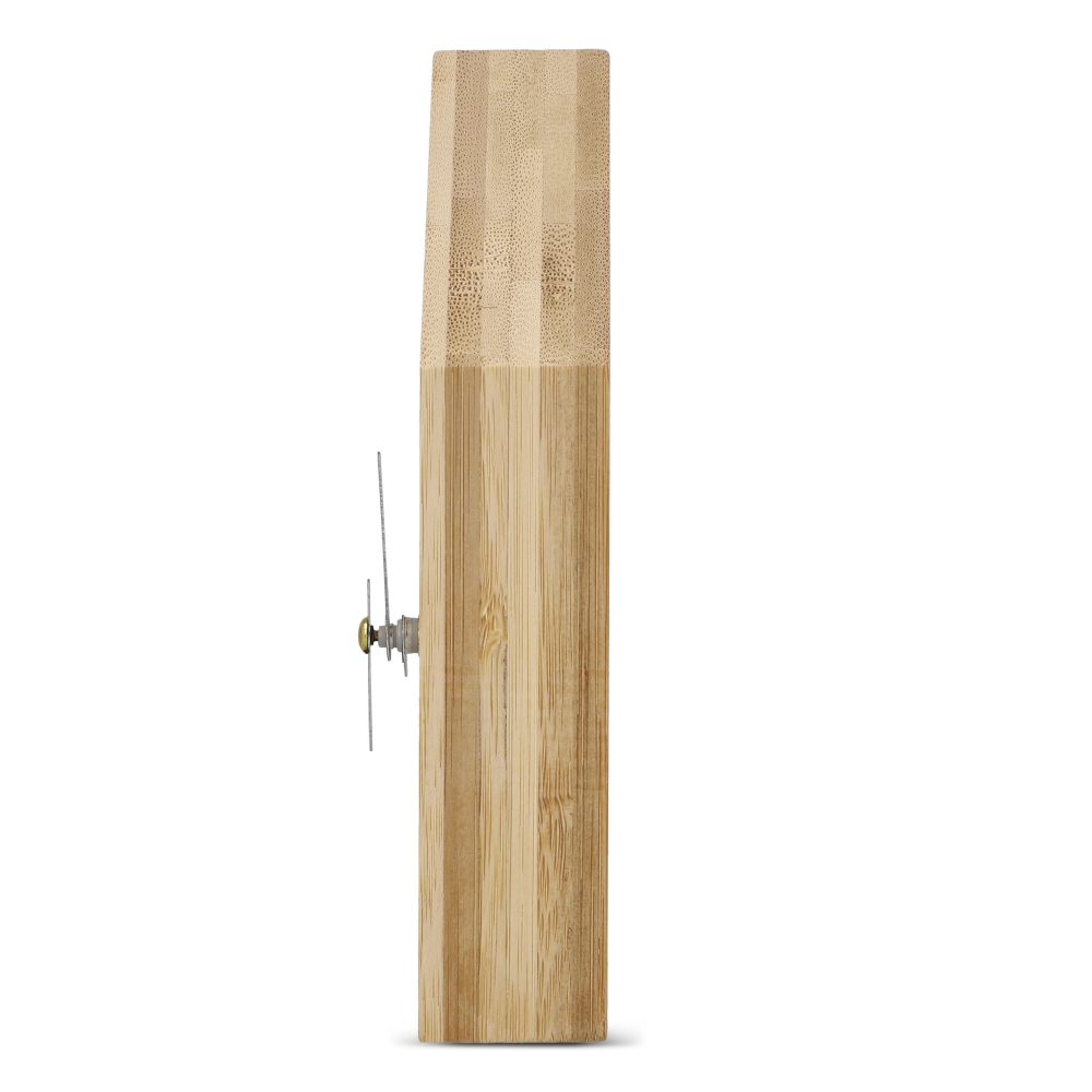 Artikel-Nr: ART91106N0094Die Schreibtischuhr Homestead vereint ein charmantes, hausförmiges Design mit einer Bambusoberfläche. Sie bringt gemütliche Atmosphäre in jedes Büro oder Zuhause. Mit Stunden-, Minuten- und Sekundenzeigern zeigt sie die Zeit präzise an. Inklusive Batterien und Geschenkbox.
