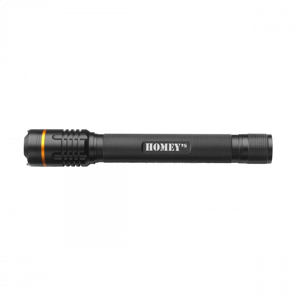 Artikel-Nr: CLP278498Leistungsstarke, wiederaufladbare Stablampe von Homey's. Mit einer superhellen LED (1000 Lumen). Diese vielseitige Lampe verfügt über eine Blitz- und Zoomfunktion – mit einem Schieberegler lässt sich der Fokus des Lichtstrahls einstellen. Zoomen Sie heran für einen konzentrierten Lichtstrahl auf bestimmte Bereiche oder heraus für einen größeren Beleuchtungsbereich. Maximale Betriebsdauer: 3 Stunden. Reichweite: 150 Meter. Wasserdicht (IP55). Ideal für Heimwerker und Profis, die im Dunkeln arbeiten müssen. Inklusive wiederaufladbarem Li-Ionen-Akku und USB / USB-C-Ladekabel. Verpackt pro Stück.