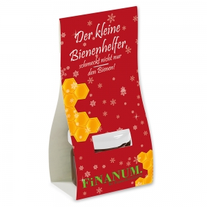 Artikel-Nr: HOP23.49603.00Ob zum Naschen zwischendurch oder eine Dosis für das Frühstücksbrot– das Mini-Gläschen mit Honig ist "was für’s Auge" und ein Genuss. In der praktischen und werblich großen Überreichverpackung eignen sich die Gläschen als genussvolle Werbegeschenke – schließlich geht nicht nur Liebe durch den Magen. Füllgewicht: 28g
