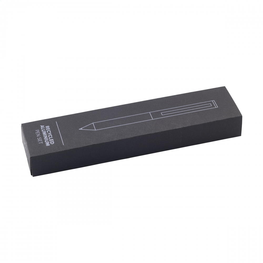 Artikel-Nr: CLP23219820WoW! Blauschreibender Kugelschreiber aus recyceltem Aluminium. Mit verchromten Akzenten und Clip. Der Stift ist mit einem Dreh-Klicksystem ausgestattet. Ein schlankes Modell mit edler Ausstrahlung. Einzeln verpackt in einer Geschenkbox aus schwarzem Kraftkarton. Durch die Verwendung von recyceltem Aluminium werden bei der Herstellung dieses Produkts weniger neue Rohstoffe verwendet. Das bedeutet weniger Energieverbrauch und weniger Wasserverbrauch.
